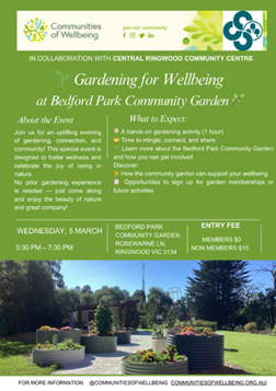 Aiming to utilise and showcase our community neighbourhood houses, this event was held at Bedford Park Community Garden. It was designed to foster wellness and celebrate the joy of being in nature.